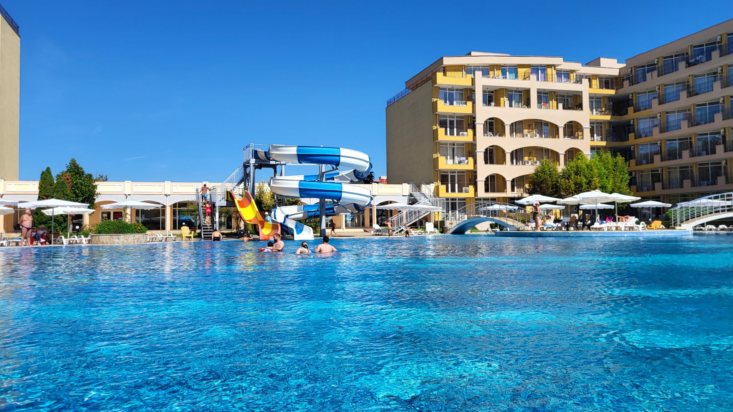 Apatmán se nachází resortu Grand Midia v Aheloy, asi 20 km od letiště Burgas. Disponuje dvěma bazény, tobogánem, restaurací, obchodem, fitness centrem a parkováním zdarma. Samozřejmostí jsou lehátka, slunečníky a WiFi připojení zdarma. Transfer z letiště nebo pronájem auta zajistíme.